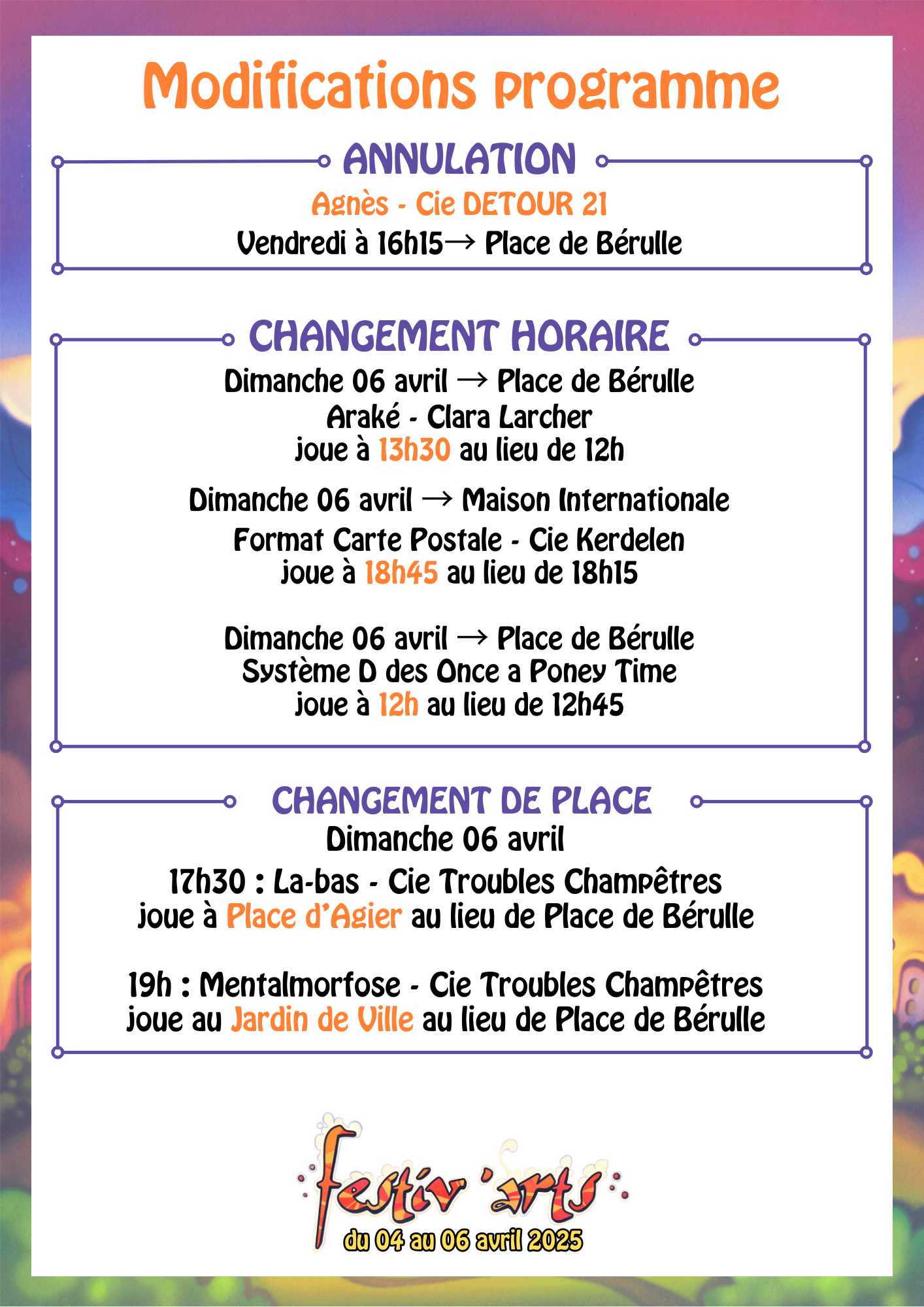 RECAP DES CHANGEMENTS DE PROGRAMME!